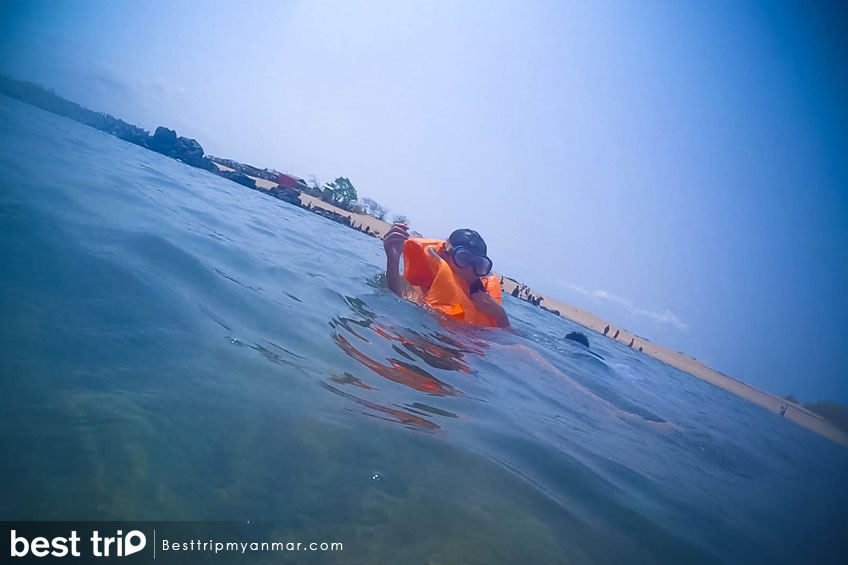 ရေအောက်ကို အရှင်းသားကြီး မြင်နေရတော့ အောက်ကရေမှော်ပင်တွေ၊ ရေညှိတက်နေတဲ့ ကျောက်တုံးကြီးတွေကို တစ်ခါတစ်ခါ ခြေထောက်နဲ့ နင်းရမှာ အသည်းတော့ယားစရာကြီးပေါ့ :D ။